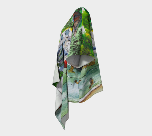 HW Watercolor City Draped Kimono
