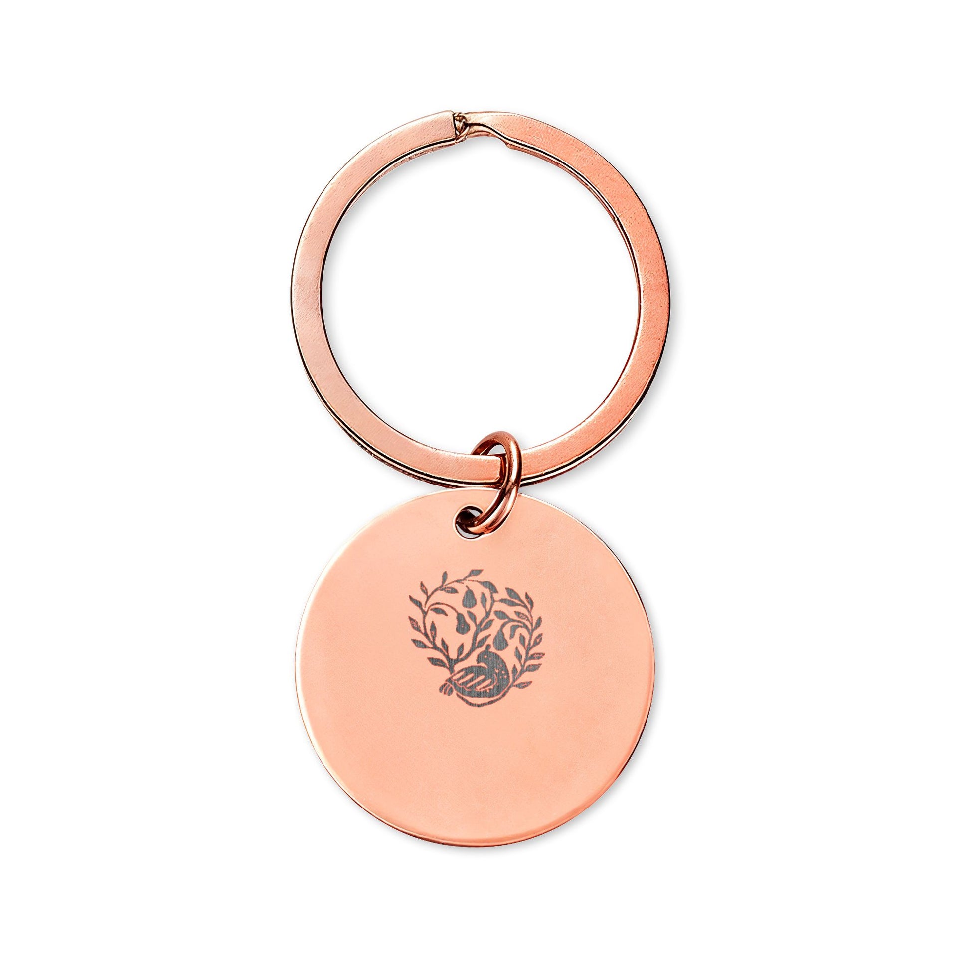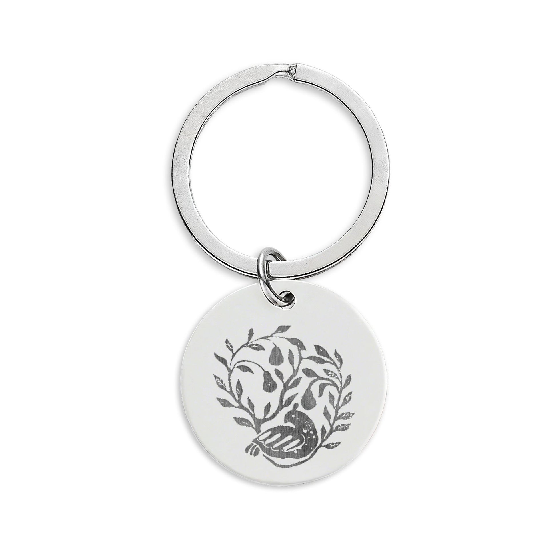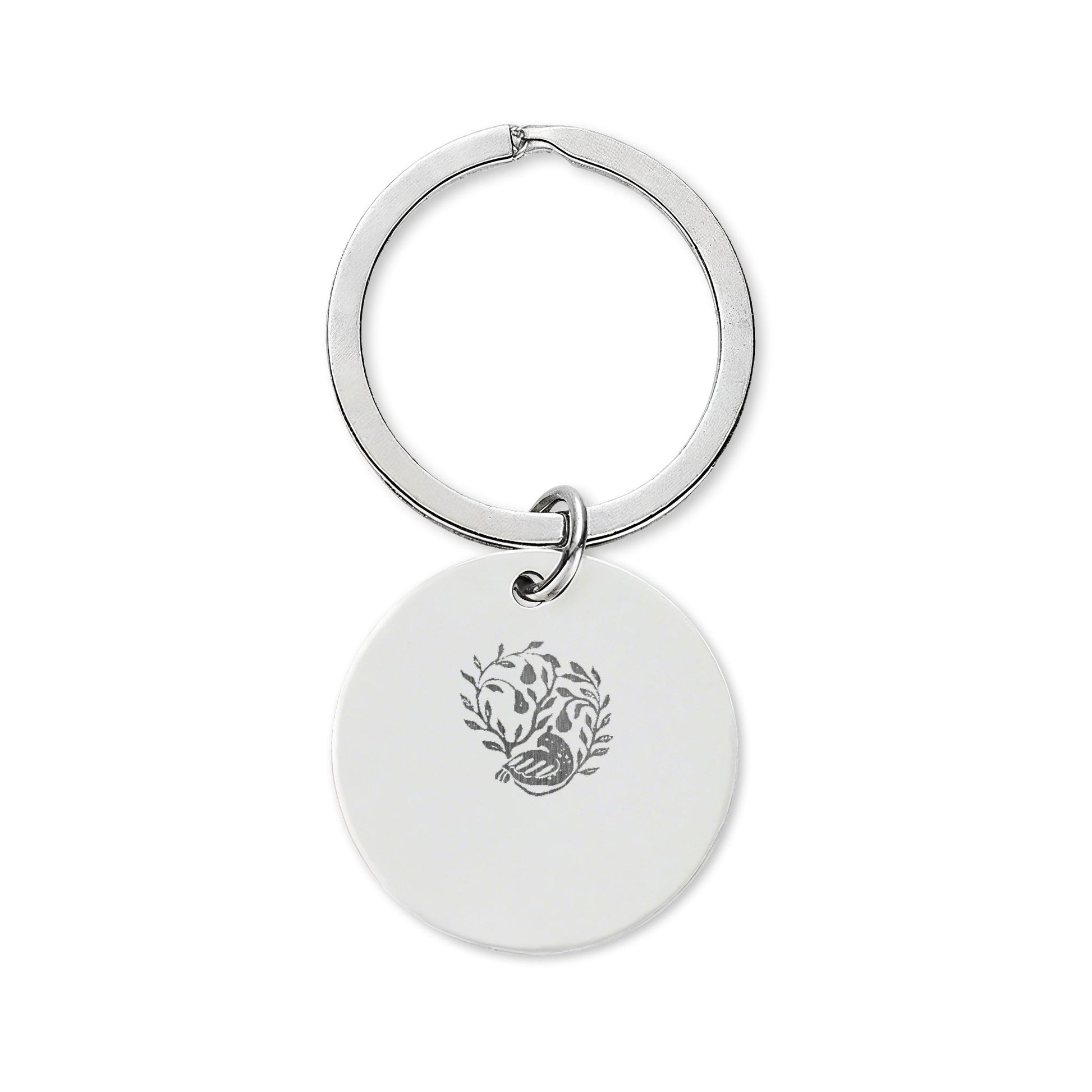 HW Partridge Engraved Stainless Steel Round Keychain — Floral Vine Design